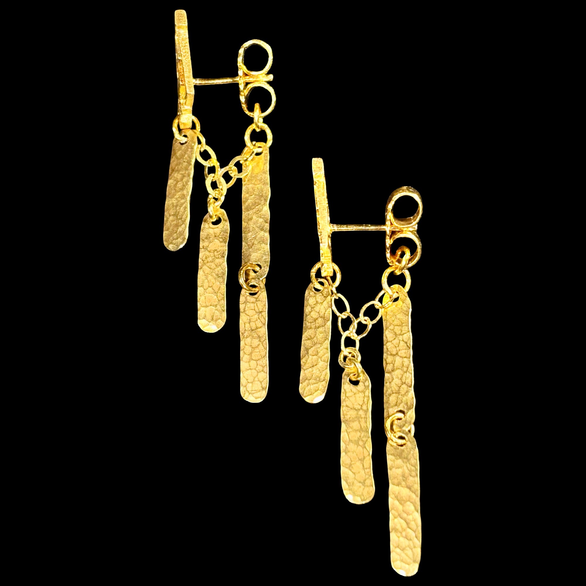 Aztecah Petite earring combined with a hanging u-chain with 4 attached PLUIE D'OR pendants.