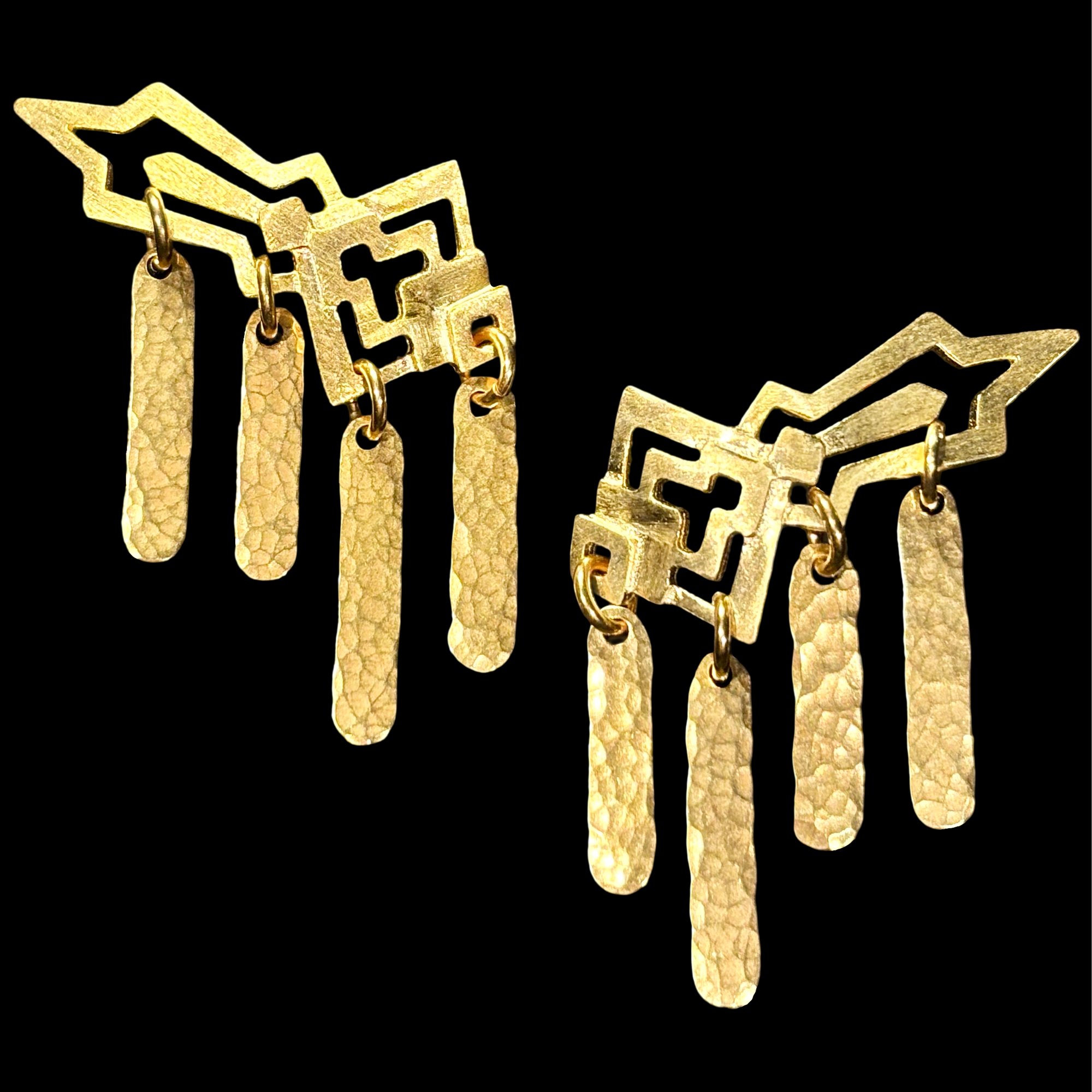 Curved Aztecah earring combined with 4 hanging PLUIE D'OR pendants.
