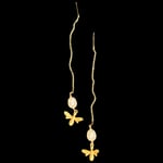 The length of the earring when wearing is adjustable, by simply pulling the thin ear thread through the ear hole to the desired length.