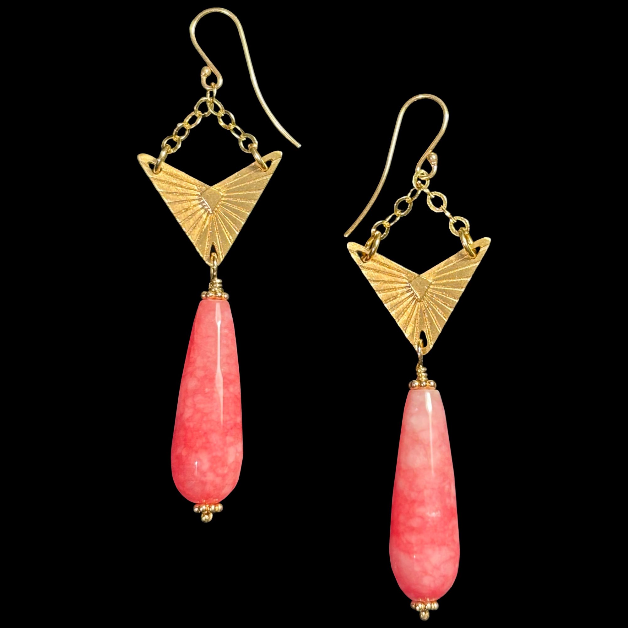 Moon Ray Earring with Pink Rhodochrosite Jade Drops