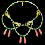 - combined with faceted green Emeralds, round green Aventurines and Coral beads along with faceted rose pink Rhodochrosite Jade Drops.