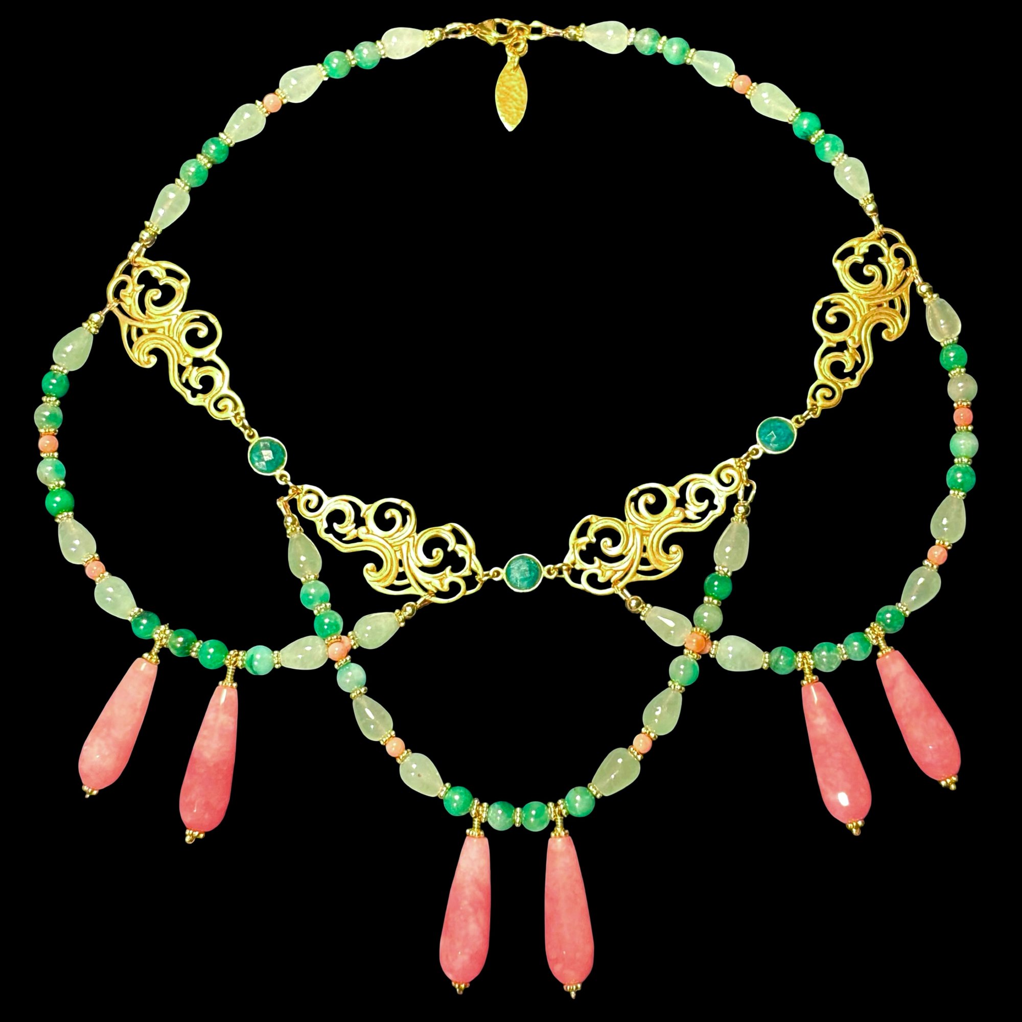 NUAGES BAROQUE Grand Collier with Emeralds, Aventurines and Jade Drops.